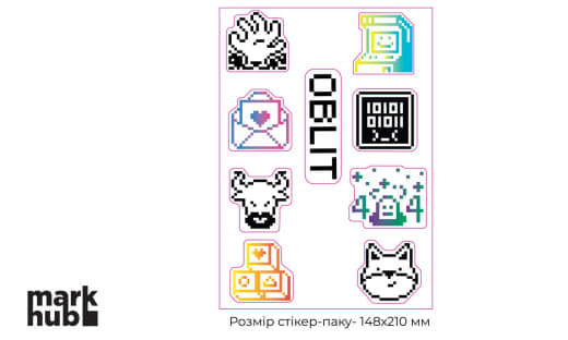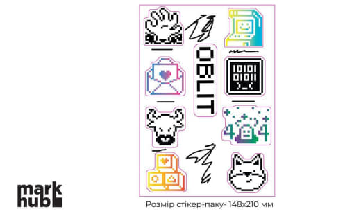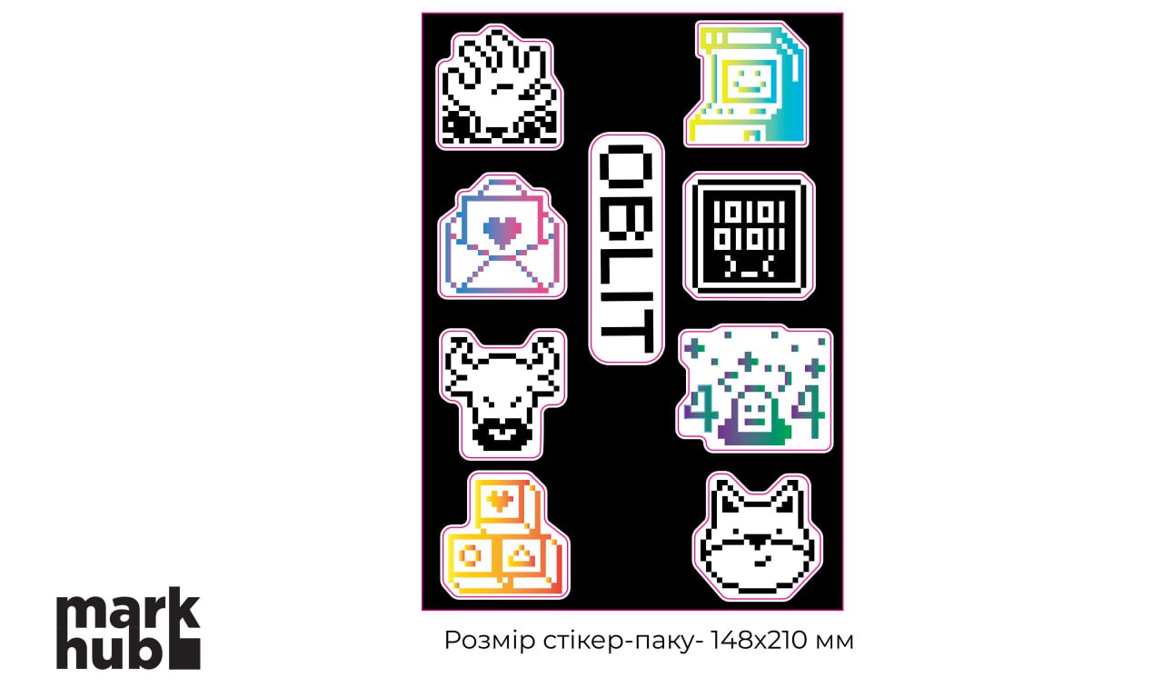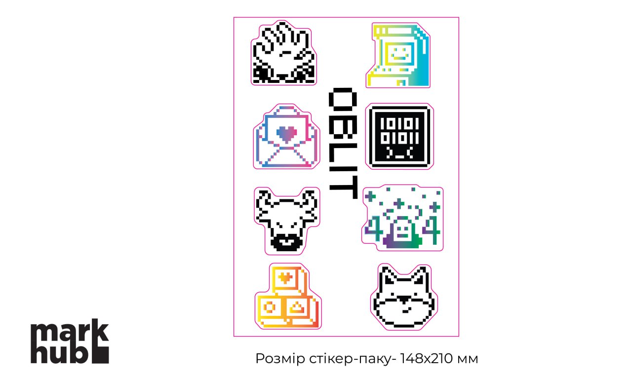 50 стікерів з нашим лого фігурних і 10 стікерсетів А5 формату